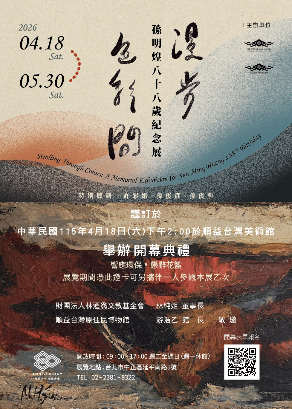展出時間:2026 年 4 月 18 日至 5 月 30 日(09:00 至 17:00,週一休館)